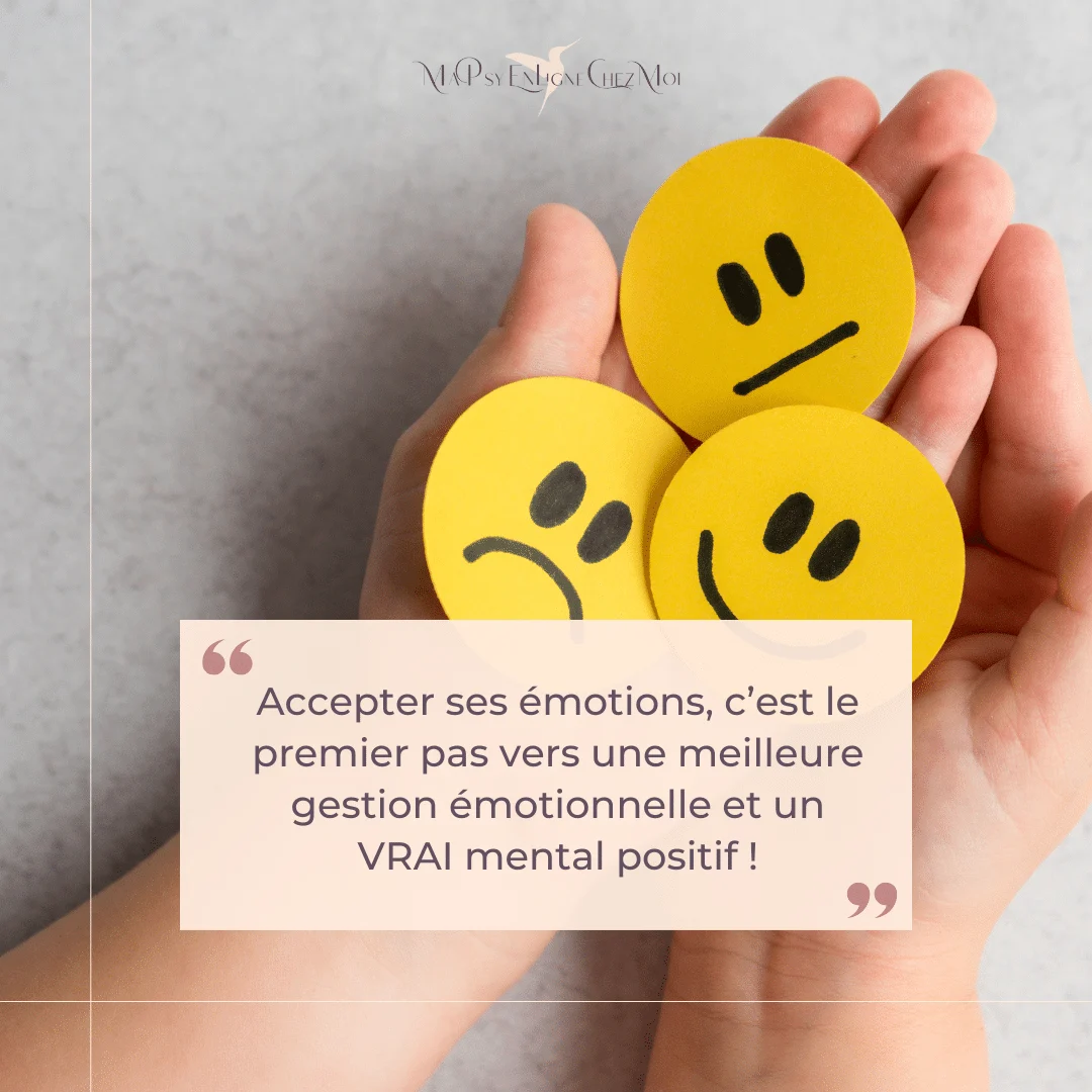 « Pense positif ! » T’a-t-on déjà dit cela en pleine crise de doute ou de tristesse ? C’est ce que disait cette maman qui se forçait à refouler ses émotions négatives, par honte d’avoir des pensées « négatives ». Mais refuser d’entendre une émotion, c’est l’amplifier ! Accepter ses émotions, c’est le premier pas vers une meilleure gestion émotionnelle et un VRAI mental positif!