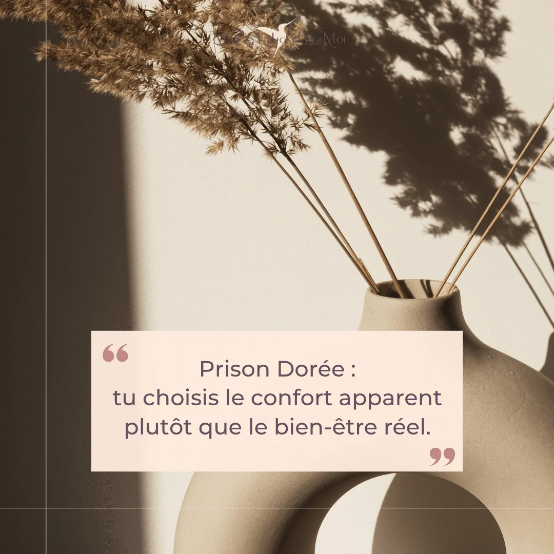 Autrement dit, on appelle prison dorée une situation qui, en apparence, semble enviable, stable, confortable… mais qui, en réalité, t’enferme dans un cadre de vie qui ne te nourrit pas intérieurement.