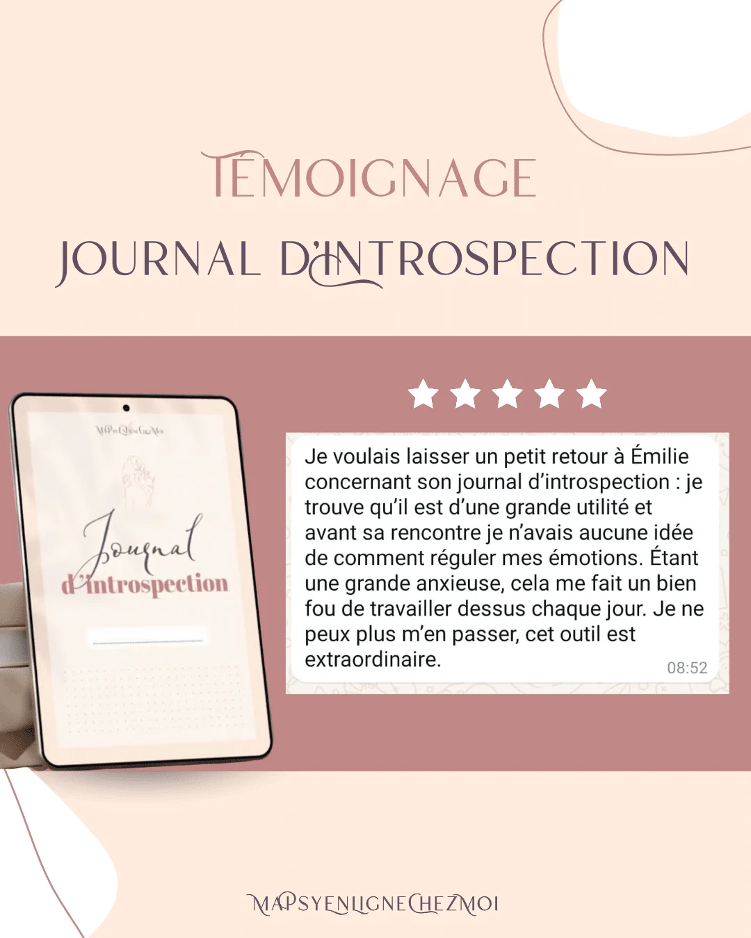Accède à ton journal d’introspection ICI avec en bonus OFFERT un challenge de 30 jours d’introspection ou réserve un créneau avec l’une de nos psychologues pour un accompagnement personnalisé, bienveillant et respectueux de tes valeurs.